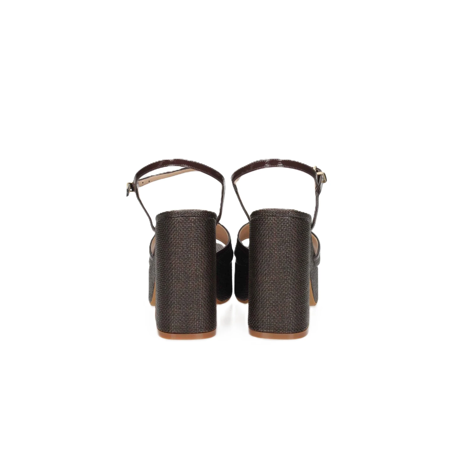 Sandalo marrone in raffia con plateau